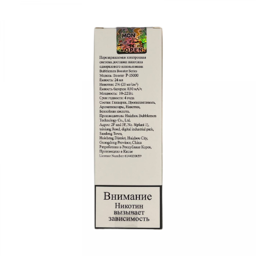 | Аромат/вкусГолубая Малина | БрендBUBBLE MON | ВидBubble Mon Booster P-15000 |